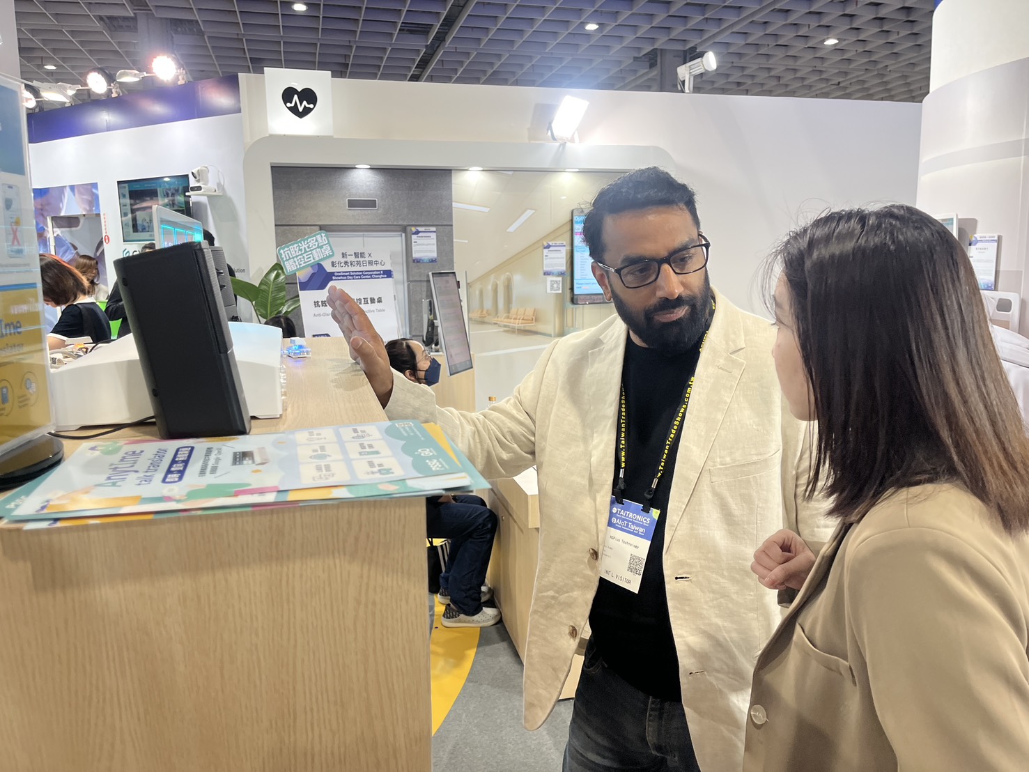 ▲ Pacific Smart System staff presenting the AnytIme Talk Translator – AI Transparent-Screen Real-Time Translator
