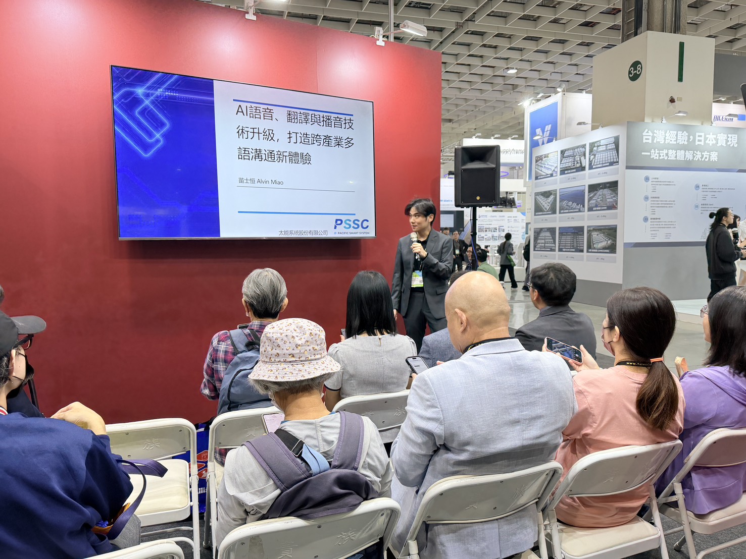 ▲ Assistant Manager Miao of Pacific Smart System speaking at the Smart Translation Experience Forum, where visitors experienced the latest voice translation technology